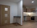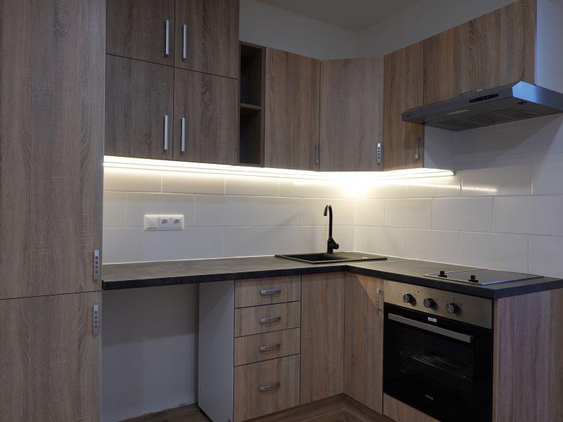 Byt o velikosti 1+KK s balkónem o celkové výměře podlahové plochy 23m2 včetně příslušenství je situován ve zvýšeném přízemí panelového bytového domu. Byt je tvořen vstupní předsíní, koupelnou společnou s WC (WC geberit, sprchovací kout, umyvadlo včetně skřínky pod umyvadlem) a jedním pokojem se vstupem na balkón. Byt je nově po kompletní rekonstrukci: nové vnitřní rozvody elektřiny 230V včetně zázuvek, vypínačů a osvětlení; nové vstupní a interiérové dveře; nové vestavěné skříně na míru v předsíni; nové keramické obklady a dlažba; nová sanita; nová plovoucí podlaha v předsíni a v pokoji; nová kuchyňská linka včetně vestavěné indukcní varné desky a elektrické trouby; jídelní kout; nové horizontální žaluzie jsou již objednány a budou dodány začátkem roku. Bytový dům je rovněž po kompletní revitalizaci a nachází se klidné části obce s výbornou dostupností veškerých služeb. Měsíční nájemné ve výši 11.000,- Kč je včetně zálohových plateb na služby spojené s užíváním bytu pro 1 osobu; dodávku elektrické energie si zajišťuje nájemce samostatně navíc. Byt je ihned k užívání.